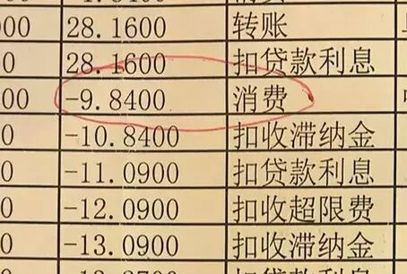 这份银行历史明细清单显示,2008年1月1号,李先生因为消费透支了信用卡的9.84元,此后便没有还款。这笔9元多的欠款就像滚雪球一样叠加,且叠加的速度就是大概每年翻一番。到了今年的8月份,这笔欠款就从最初的9.84元,增加到9350元。