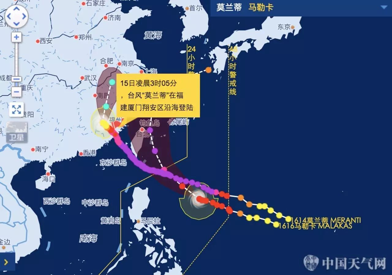 除了“莫兰蒂”之外,今年第16号台风“马勒卡”目前也已经由强热带风暴级加强为台风级,中央气象台预计,“马勒卡”将以每小时20公里左右的速度向西偏北转西北方向移动,最强可达强台风级到超强台风级,逐渐向台湾以东洋面靠近,然后趋向华东沿海,并顺着华东沿海北上。