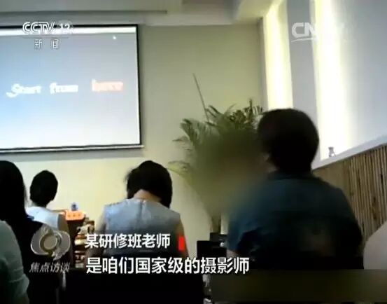 采访时,这家研修班尚未开课,这些名师到底会不会来不得而知。但在已经开课的另一家学费要58000元的研修班上,央视记者试听了一堂摄影课。课前,有老师隆重介绍了这位授课老师,称其是国家级摄影师。