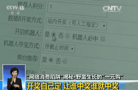 记者在调查中发现,很多“一元购”平台开奖过程并没有监督,甚至可以在后台控制中奖者和开奖进度。“一元购”平台搭建者表示,“整个商场都是你的,后台都由你控制,人流量、粉丝、指定中奖等都可以控制。”