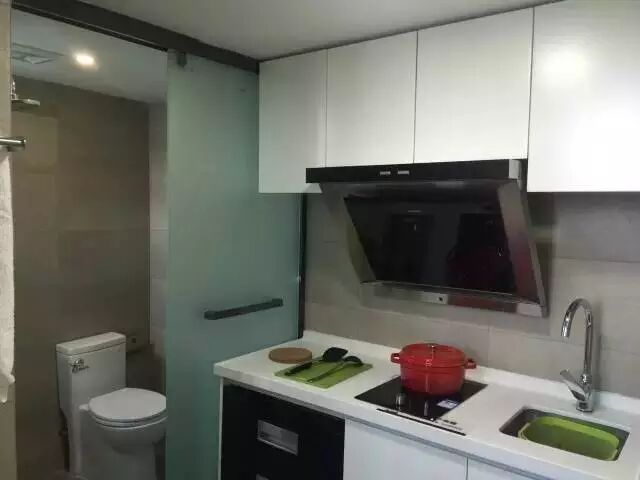 加上开发商赠送的面积,实际使用面积大概有12平米。因户型不方正,只有在房门关着的情况下,才能走进厨房和卫生间。