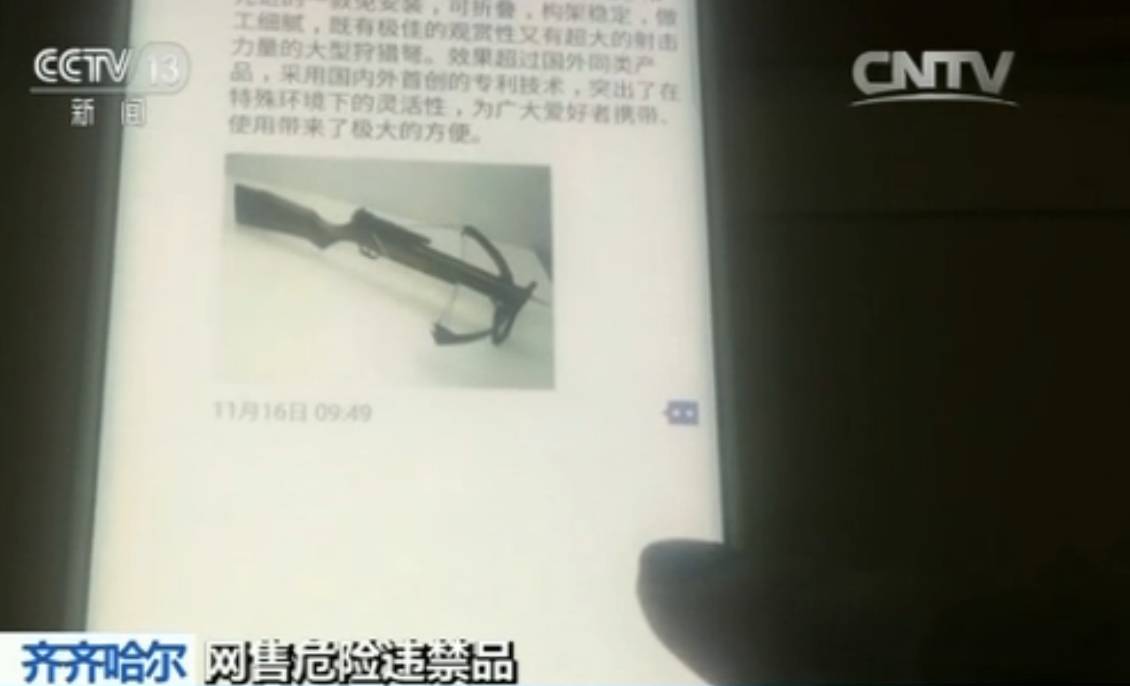 齐齐哈尔市公安局铁峰分局网安大队大队长康国健:“枪支、刀、弩、警棍、手铐等违禁的一些东西,她都在卖。”