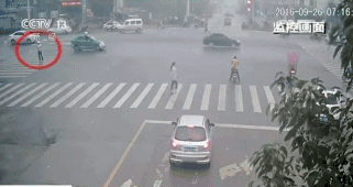 监控视频显示:9月26日上午7点16分左右,在阜南县一十字路口,一辆黑色轿车突然冲出。一名正在路口执勤的交警躲闪不及,一下子被撞飞,在空中翻滚了几圈后,重重地摔在了地上。