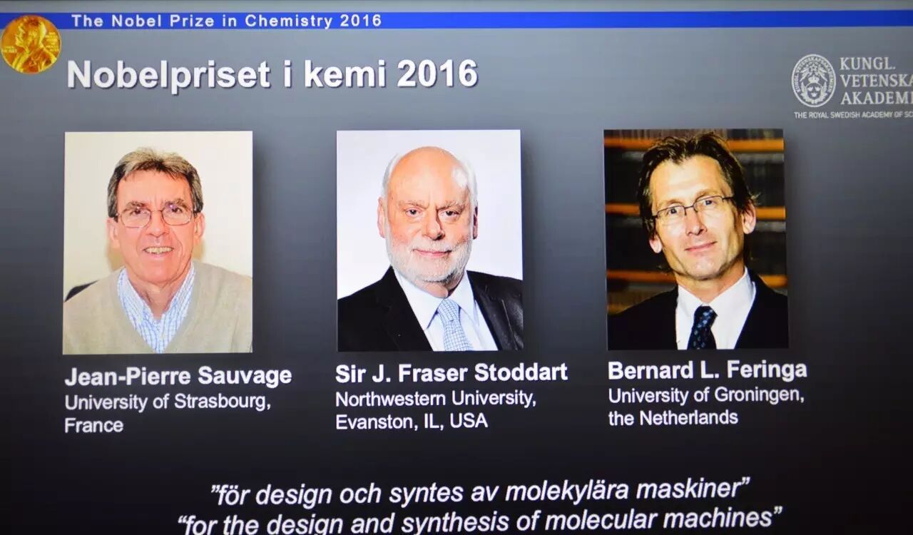 瑞典皇家科学院当地时间5日宣布,将2016年诺贝尔化学奖授予法国科学家绍瓦热,英国科学家斯托达特,和荷兰科学家费林加。以表彰他们在分子机器设计与合成领域的贡献。这三名科学家将平分约合620万元人民币的奖金。