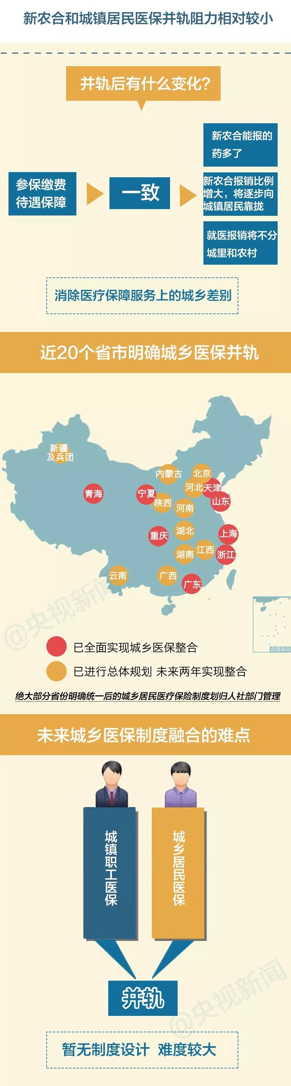 人社部此次《通知》强调,努力实现年底前所有省(区、市)出台整合方案,2017年开始建立统一的城乡居民医保制度。