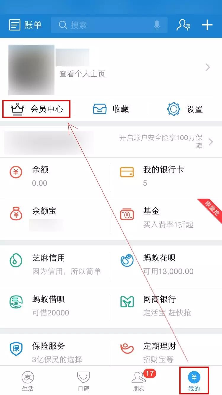 很多“剁手党”表示,平常只用支付宝钱包进行付款,并不知道怎么查看“蚂蚁积分”,其实,只要点击支付宝钱包右下角的“我的”图标,再选择“会员中心”一项,就可以在会员中心里,自己的头像右侧看到蚂蚁积分。