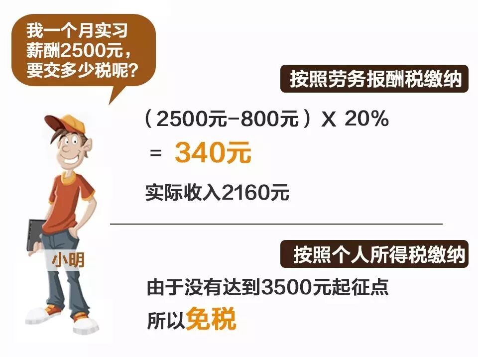 结束实习返校的学生陆续遭遇“劳务报酬个人所得税”,该税制规定的800元的起征点,远低于工薪个税3500元的起征点。