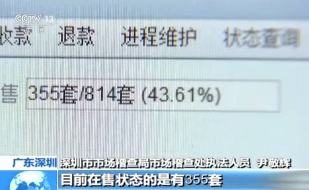执法人员展示了该公司内部销售表格,显示目前有355套在售,与员工内部培训文件上显示的“整理出10套稀缺的房源” 、“房源非常紧张”的情况不符。