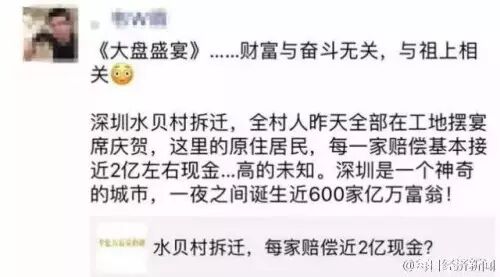 谣言一:深圳水贝村拆迁每家赔2亿?