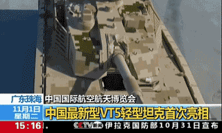 数码迷彩涂装、105毫米火炮、外形科幻的遥控武器站,各种外挂配置一应俱全,现代感十足的我国最新型的VT5轻型坦克在航展首次亮相,立刻成为了兵器馆中最瞩目的明星。VT5轻型坦克战斗全重仅为30多吨,但大马力电控发动机,保证了它的机动性和活力。同时,它小身材却有大威力,VT5综合作战能力达到了世界先进水平。