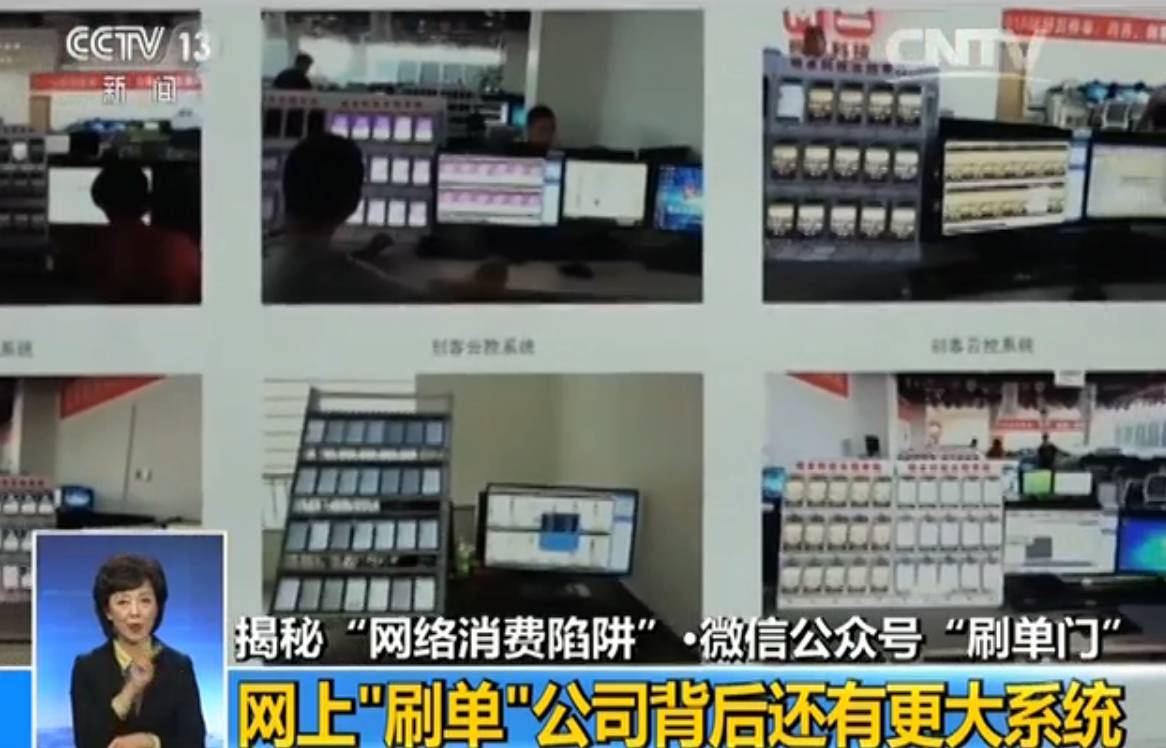 一排排的手机连着电脑,手机屏幕上同时出现微信的界面,这样的图片在公众号“刷单门”曝光后在网上广为流传。记者查到,这是一种被称为“微信群控”的自动化营销系统。