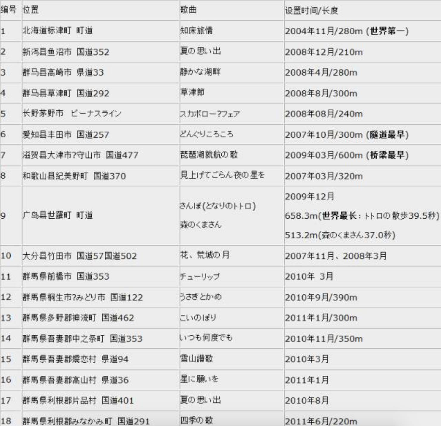 而作为音乐公路的诞生地,日本就更多了,请看下图🔽