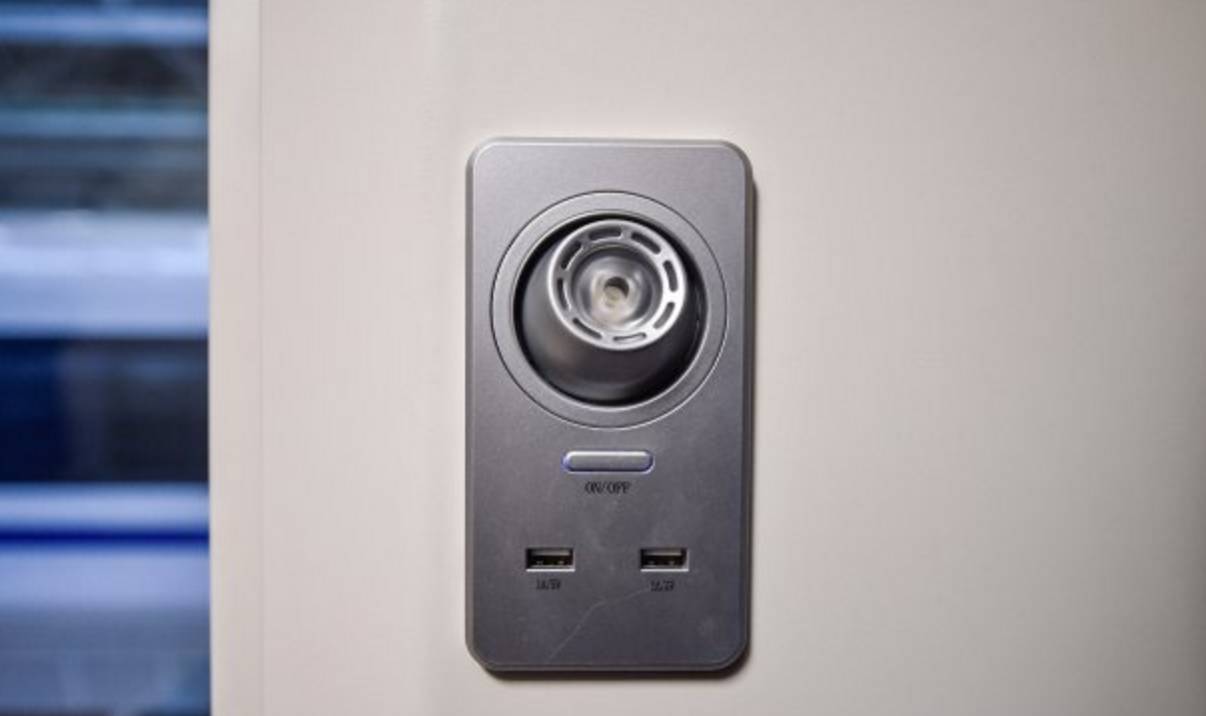 手机没电了怎么办?列车在每个包厢设置了四个电源插座,保证包间内每名旅客可以同时为电脑或手机等电子设备充电。即使不方便下床,也可以利用床头灯的USB接口为电子设备续航。