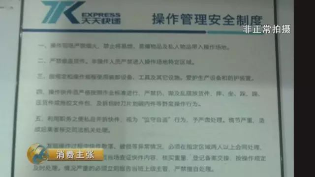 天天快递挂在墙上的操作管理安全制度的第一条明确规定:操作现场严禁烟火,禁止将易燃易爆物品及私人物品带入操作场地。既然有明文规定,为什么这位分拣员不遵守呢?