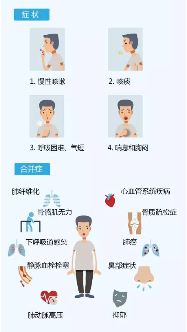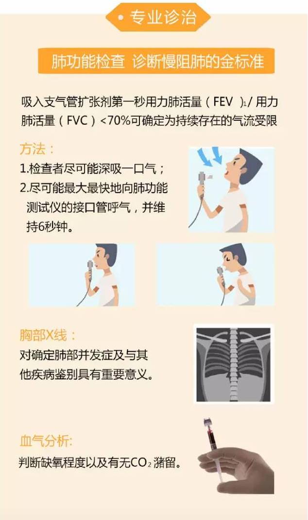 在我国慢阻肺患者中2/3处于早期阶段,由于仅有咳嗽、咳痰等表现,病人往往不去就医,因此失去了早期发现的机会。同时由于大众知晓率低,造成漏诊率达7成以上。