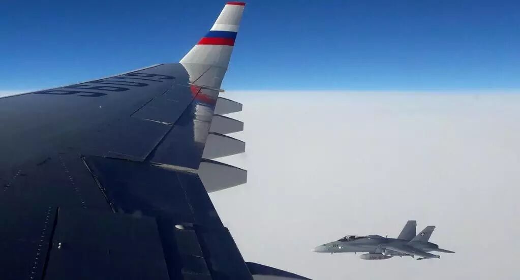 报道称,其中一架战斗机距离俄罗斯飞机非常近,不仅可以看到机尾上的瑞士国旗、飞机编号J-5024,甚至可以看到飞行员的容貌,它从左侧靠近俄罗斯飞机的机翼作出动作,然后又从右侧靠近。