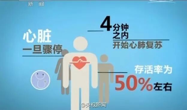 心脏骤停,4分钟内开始心肺复苏,存活率达50%: