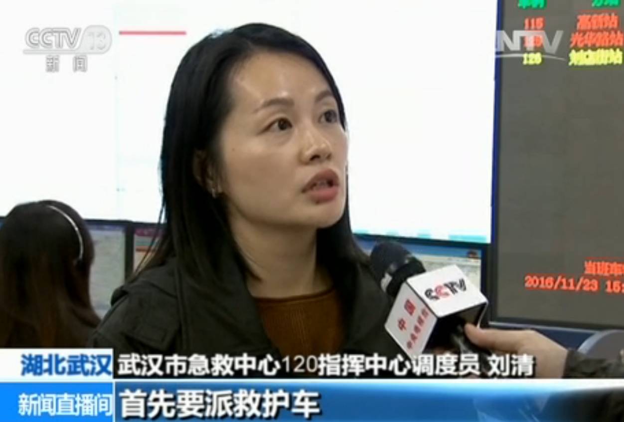 武汉市急救中心120指挥中心调度员刘清:“当时这位是带着哭腔女士打电话来的,我就觉得患者的病情可能比较重,我先问清她的地址和基本信息,派了救护车,然后进行急救指导。我们这边是调派分离,我在受理急救电话,有同事专门派急救车。”