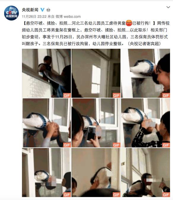 河北衡水深州保育员虐童视频发酵已有几日,昨晚,河北深州市通报,已对幼儿园做出停业整顿处理,涉事的3名保育员被警方行政拘留。