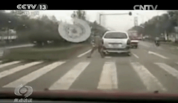 车主王先生:“他爬起来,在旁边站,也没有走开,就看着我也不说话,一直看着我,我就把车开走了。”