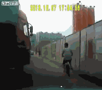 这段视频是张先生于今年11月10日拍摄下来的一起事故画面。就在前一天,同一地点,他的车也与画面中的这辆红色残疾人代步车发生了碰撞,当时代步车前脸毁损严重,代步车驾驶员向张先生索要了4000元的修车费。