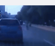 不知道是感觉自己的“表演”并不成功,还是看到车辆安装了行车记录仪,这名男子倒下去十几秒后,又自己爬了起来,站到一旁。