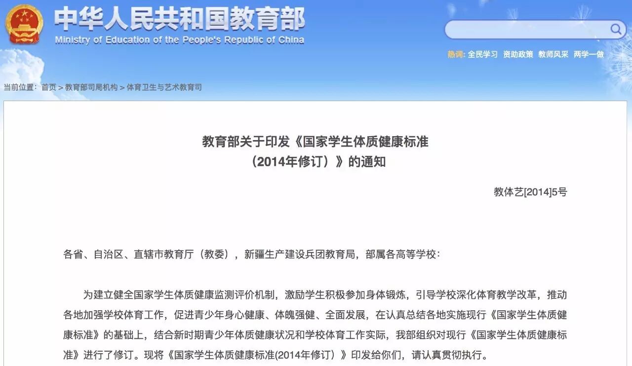 △目前学校实行的相关体测标准依据的是2014年教育部印发的《国家学生体质健康标准》。