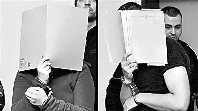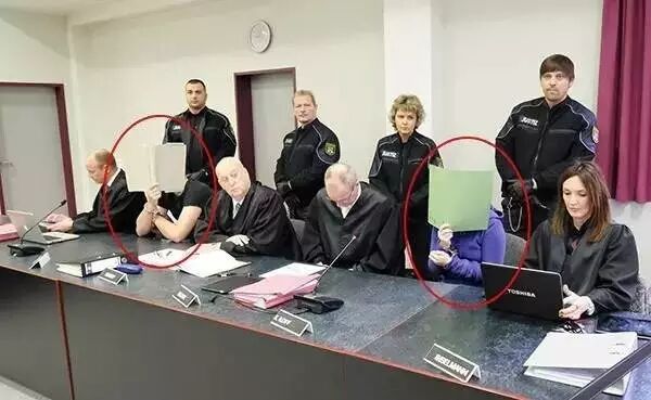 而在庭审前后的允许摄影时段内,两名被告人始终都用纸张遮挡脸部。