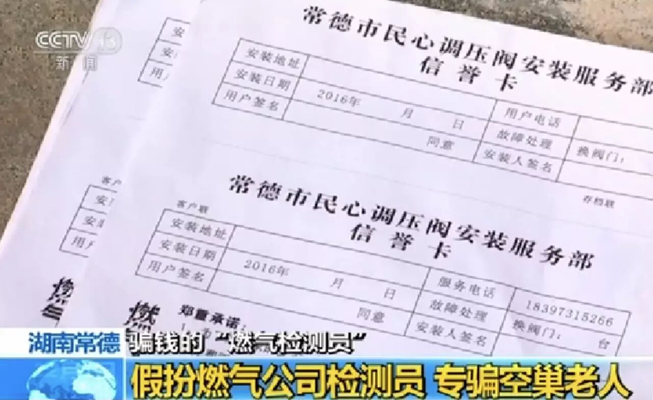 在这名所谓“检测员”的威胁下,费祥德更换了燃气阀门。随后,这两名“检测员”又提出,安装新阀门是免费的,只要交119元的立户费,燃气公司今后免费上门维护,并可以提供一份保险单,今后因质量问题出现燃气泄漏,可以赔偿50万元。按这两个人的要求,费祥德交了119元的立户费。事实上,与费祥德同村的几户空巢老人,也遇到了类似情况。