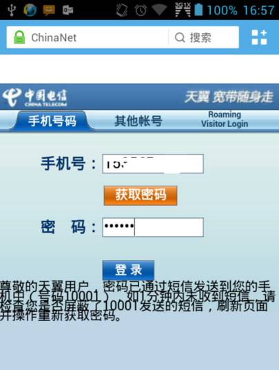记者用电信苹果手机体验发现,连接ChinaNet的Wi-Fi后,会跳出一个登录链接,出现3种登录方式:手机账号登录、WiFi时长卡登录、宽带账号登录。选择手机账号登录后,会收到一个密码,简单填写后便可以连接网络。整个登录和使用ChinaNet过程中,没有收到流量要收费和费用怎么收的提醒。