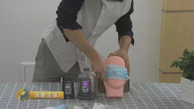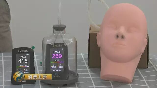 然后,通过孔洞将空气抽到模拟肺部,再用霾表测量浓度数值,根据测量装置的内外读数差,计算不同口罩阻隔细颗粒物的能力,对防护效果进行对比。