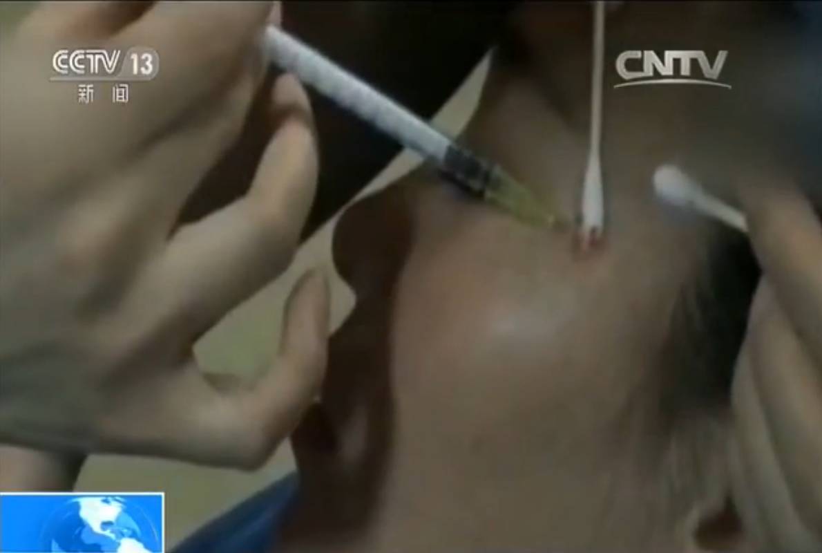记者看到两位学员的颈部和脸部分别被进针五次,学员被扎针的部位都出现了血点,记者注意到,这个会议室没有紫外线灯进行消毒,也没有进行室内空气消毒,甚至连吸氧设备以及抢救设备都没有,在这里注射毫无安全性可言。