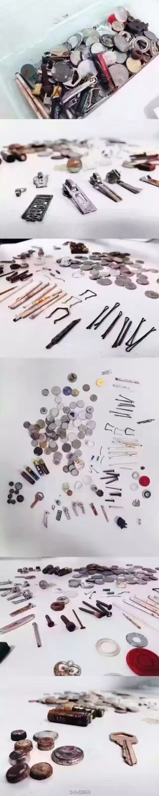除了果核,孩子还会吞下很多意想不到的东西,下面的照片是重庆儿童医院消化科的医生拍摄的,全是近几年搜集的通过胃镜帮小朋友们取出的误吞异物↓↓