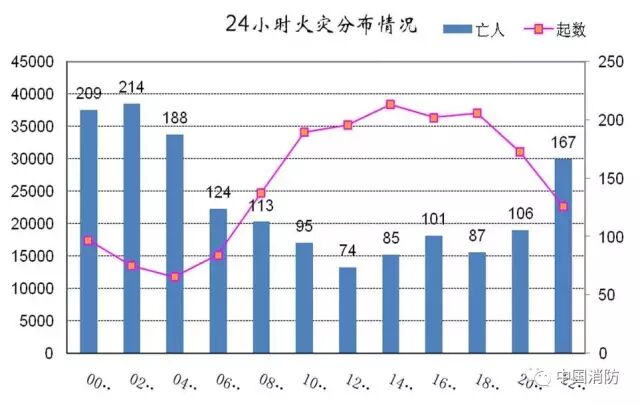 从分时段致死情况看,夜间的火灾发生机率虽然低于白天,但致死比例较高,22时至凌晨6时发生的火灾占20.6%,造成的死亡人数占总数的49.1%。