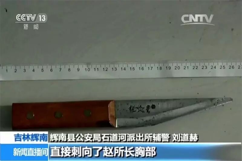 刘道赫刚参加工作一年多,当时,警车上只有赵天昱和他两个人。刘道赫说,于某被截停后,抢先用脚踹住他这侧的车门,让他无法下车。赵天昱见状立即跳下车抓捕于某。而就在这时,于某忽然从怀里掏出一把尖刀。