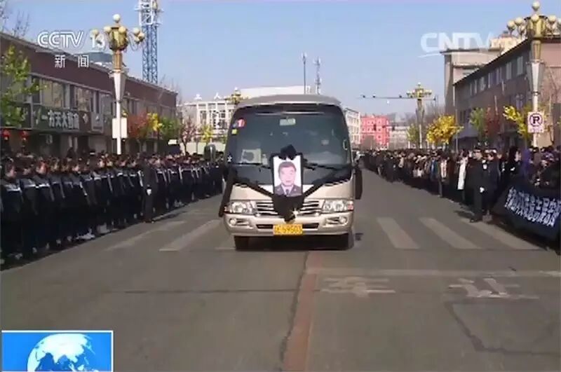 而现场更多人是与赵天昱素不相识的群众,他们从县城的四面八方赶过来,尽管天气寒冷,但人们有秩序地、坚持守候在灵车经过的地方,默默地为英雄送行。