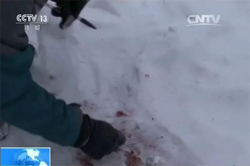 事发第二天警方进行现场勘查,这是无畏民警的鲜血被凝固在道路上染红了冰雪的画面。