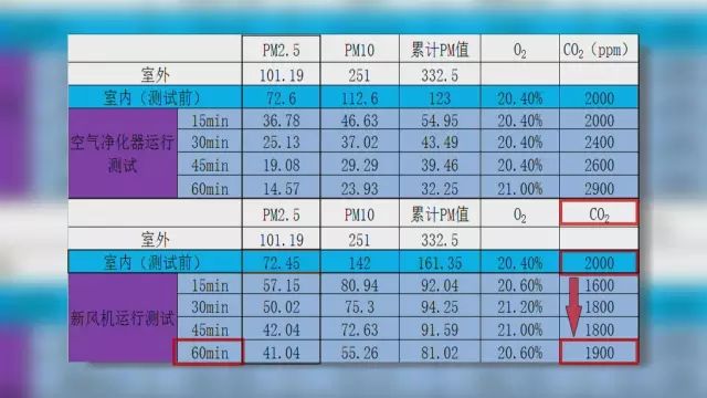 但是,测试表明,新风系统在换气方面有着空气净化器没有的特长。在二氧化碳浓度这个指标上,我们发现,空气净化器在开启1个小时后,由于房间里有11个人在活动,室内二氧化碳浓度竟然从2000ppm升高到了2900ppm,增加了900ppm。