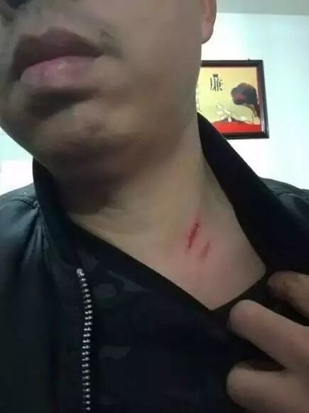 △胡先生称双方发生冲突,混乱中他的脖子被打伤。