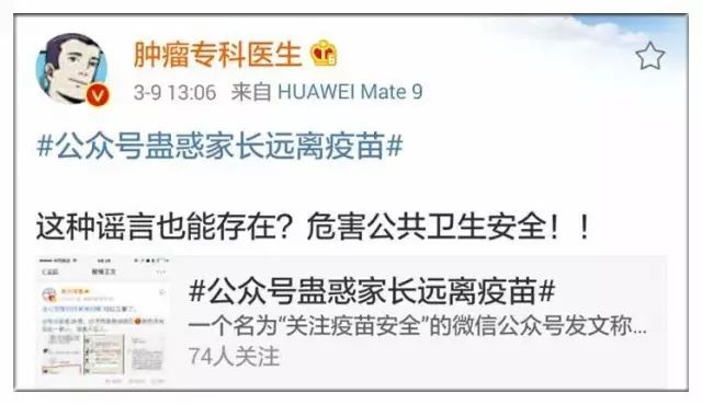 近日,一个名叫“关注疫苗安全”的微信公众号发布了一篇标题为《一名有良知的疫苗工作者的心声!所有父母必看!为了孩子的健康,请远离疫苗》的文章,遭到微博上多位已认证的医学专家怒斥。