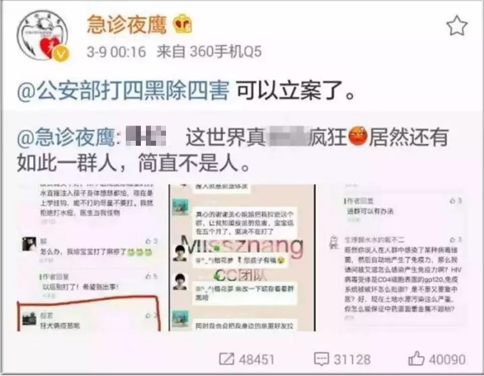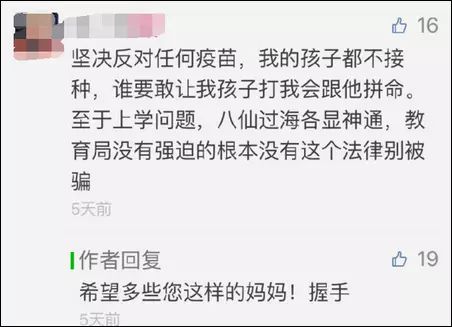还有人表示“谁要敢让我孩子打疫苗我会跟他拼命”,十分“英勇不屈”……
