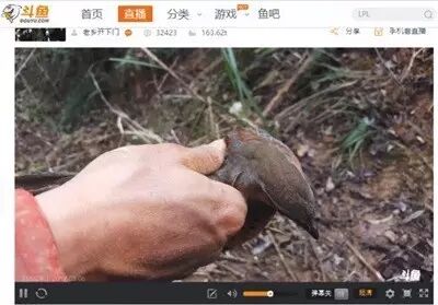 △ 斗鱼直播平台上,“老乡开下门”捕获野鸟。