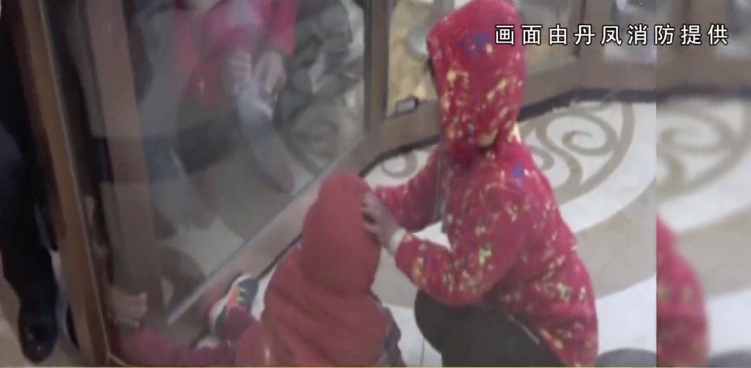 在丹凤县金山国际酒店的大堂内,一名三岁的小男孩左脚踝被旋转门夹住动弹不得,一名五岁的小女孩也被困在旋转门内。接到求救电话的消防官兵到达现场后,先让家长在旋转门外与孩子沟通,稳定孩子的情绪。随后,消防官兵对旋转门的玻璃进行破拆,很快打开了救援“通道”。