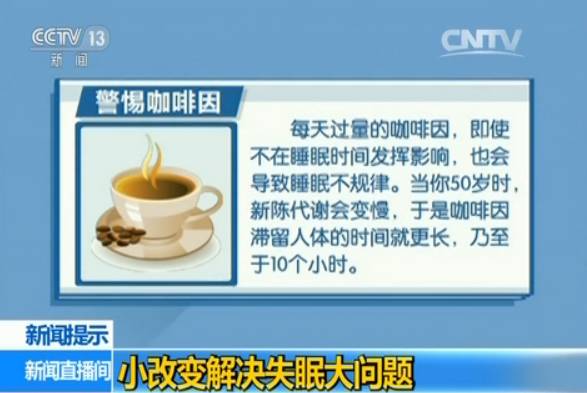 每天过量的咖啡因,即使不在睡眠时间发挥影响,也会导致睡眠不规律。当你50岁时,新陈代谢会变慢,于是咖啡因滞留人体的时间就更长—甚至可以达到10个小时。