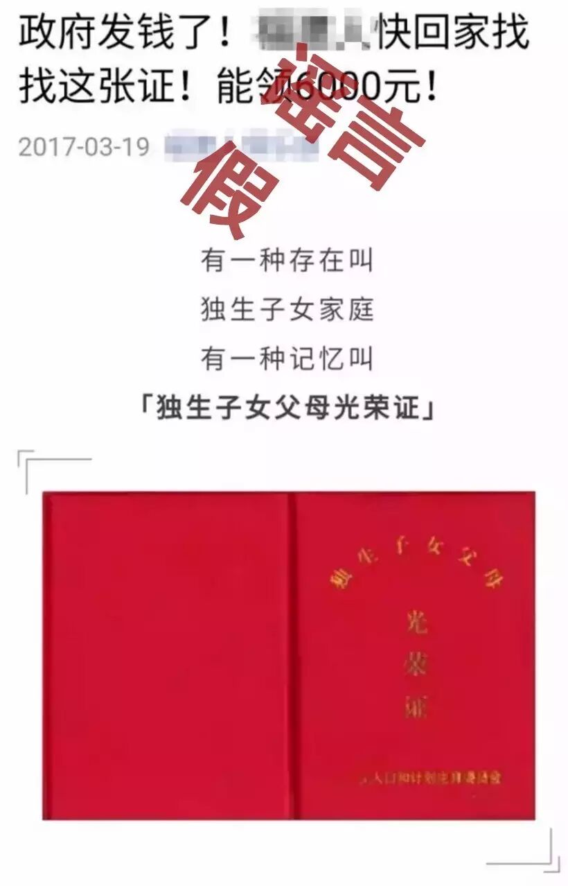 3月中下旬,一则《政府发钱了!快回家找找这张证!能领6000元!》的消息在微信朋友圈流传。主要内容是: