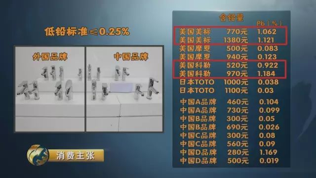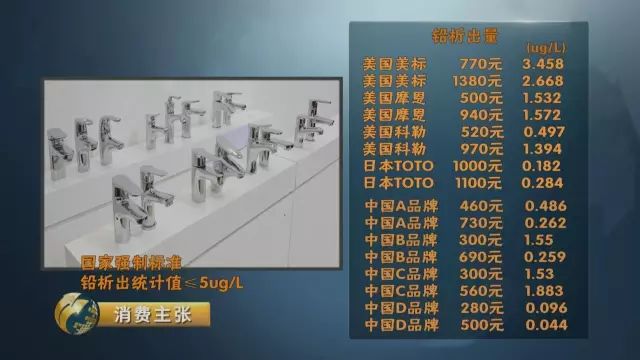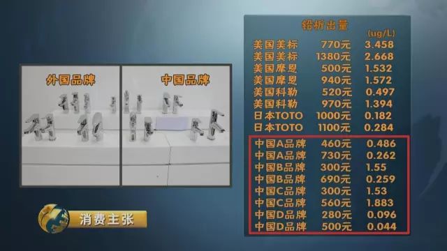 段蕴峰国家陶瓷及水暖卫浴产品质量监督检验中心 检测工程师:“经过一周严谨测试,最后我们得出的结论是这样的,在总体上讲,中国的品牌和国外的品牌上没有一个明显差距,但是国内品牌稍好于国外品牌,其中成绩最优的龙头,是一个国内品牌的龙头,铅析出量最高的龙头,是一个美国产龙头,它们俩的数据相差了近80倍。”