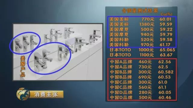 但是,仔细查看结果,也有让我们感到意外的地方:美国这三个国际大品牌产品,价格虽然大都超过中国这些品牌产品,但水龙头里铜的含量却要普遍低于中国的这些产品。