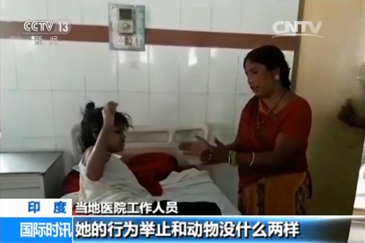 当地医院工作人员表示,女孩到医院的时候,她披头散发,没穿衣服,很虚弱看上去像是好几天没吃东西了,行为举止和动物没什么两样。
