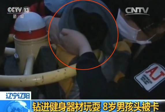 近日,辽宁辽阳一名8岁男孩,因为好奇钻进小区健身器材里玩耍,导致头部被卡。