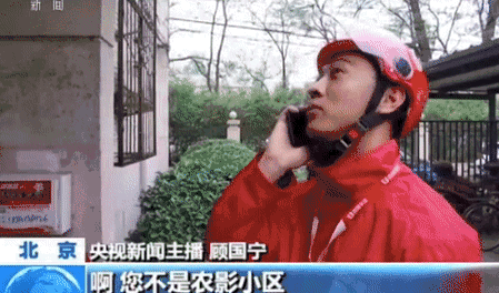 央视新闻主播顾国宁:您好,我是外卖,我现在在您楼下,您这个门禁要按多少?啊?您不是农影小区……办公区是吧,办公区四号楼是吧,对不起对不起我马上到。